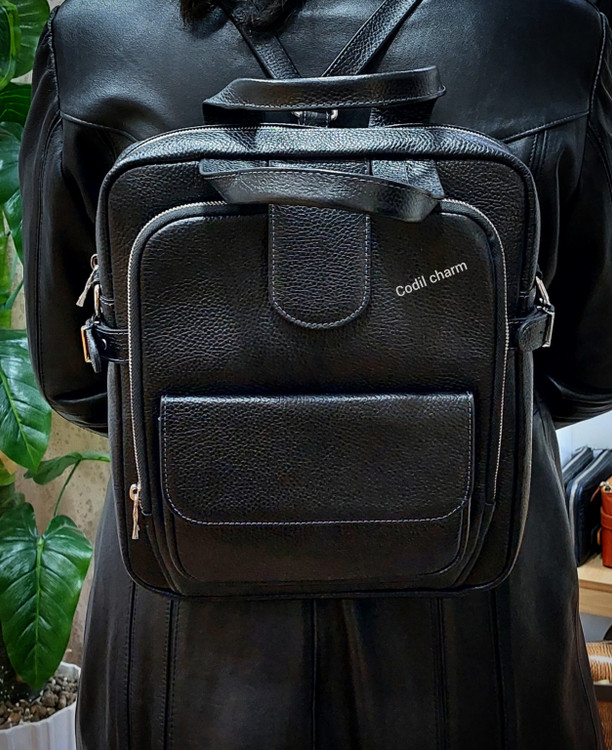 کوله پشتی ۳کاره تولید از چرم طبیعی و یراق فلز مرغوب جا دار و زیبا و بسیار خوش دست دارای بند بلند که هم به صورت کوله و هم به صورت روی دوش میتوان استفاده کرد و با کارت اصالت محصول و گارانتی تحویل داده میشود